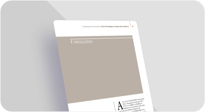 Assessing the links between first aid training and community resilience 13 1 Introduction key aim of the British Red Cross Saving Lives, Changing Lives strategy 2010 – 2015 is to facilitate the building of A resilience in communities to help them prepare for and withstand disasters. An underlying assumption at the British Red Cross is that first aid training helps to build community resilience, through communities being better able to “rely on their own skills to save lives” (ICRC, 2010, p11). In March 2010 the Senior Management Team agreed to commission internal research into the outcomes and impacts of first aid training in communities and the links with community resilience, to ensure that this British Red Cross strategic priority is underpinned by evidence. The aim of this research, therefore, is to examine whether there is evidence of community resilience as a result of receiving British Red Cross first aid training. 1.1 defining ‘community’ The majority of community resilience literature views communities in geographic terms, for example groups of people living in