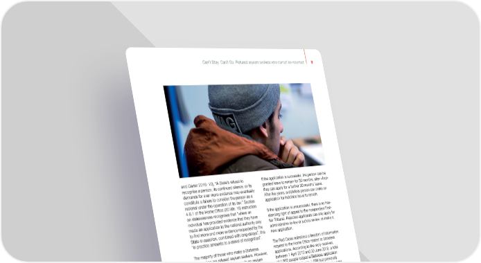 Can’t Stay. Can’t Go. Refused asylum seekers who cannot be returned 9 and Carter 2016: 15), “A State’s refusal to If the application is successful, the person can be recognise a person, its continued silence, or its granted leave to remain for 30 months, after which demands for ever more evidence may eventually they can apply for a further 30 months’ leave. constitute a failure to consider the person as a After five years, a stateless person can make an national under the operation of its law.” Section application for indefinite leave to remain. 4.6.1 of the Home Office (2016h: 16) instruction on statelessness recognises that “where an If the application is unsuccessful, there is no free- individual has provided evidence that they have standing right of appeal to the independent First- made an application to the national authority only tier Tribunal. Rejected applicants can only apply for to find more and more evidence requested by the administrative review or judicial review, or make a State in question, combined with long delays”, this new application. “in practice amounts to a denial of recognition”. The Red Cross submitted a freedom of information The majority of those who make a Stateless request to the Home Office related to Stateless application are refused asylum seekers. However, applications. According to the reply received, some applicants have never made an asylum between 1 April 2013 and 30 June 2016, a total claim and there is no requirement to do so. There of 1,662 people lodged a Stateless application is no fee to pay to submit a Stateless application, (Draper 2016). Of these, 1,096 had previously but the form is currently available only in English. applied for asylum. As of 30 June 2016, the total With the exception of Scotland, legal aid is number of people who had a decision on their generally not available in the UK for advising, Stateless application was 854 and 41 people have representing or assisting someone who wishes been granted leave to remain on their Stateless to make an application for leave to remain as a application (Draper 2016). stateless person, despite such applications often being factually and legally complex. Legal advisors can apply for exceptional case funding, but this 1.4 The suffering and limbo involves a significant amount of work for the legal facing those who cannot be advisor and they will receive limited remuneration returned only when exceptional case funding is granted (Woodhouse and Carter 2016). Refused asylum seekers who, through no fault of The burden of proof rests with the applicant in their own, cannot be returned to their country of the statelessness procedure and they must prove origin risk falling into crisis. Without the right to a negative: that he or she is not considered a work and with limited or no statutory support, the national of any State. The standard of proof is Red Cross sees people every week who are in also higher than the reasonable degree standard desperate situations stemming from their position applied in refugee status determination. While in society and the world as a person without an application is pending, the individual has no immigration status. Yet the option of returning to right to work and, currently, access to only basic their country of origin is not open to them. support may be available under Section 4.