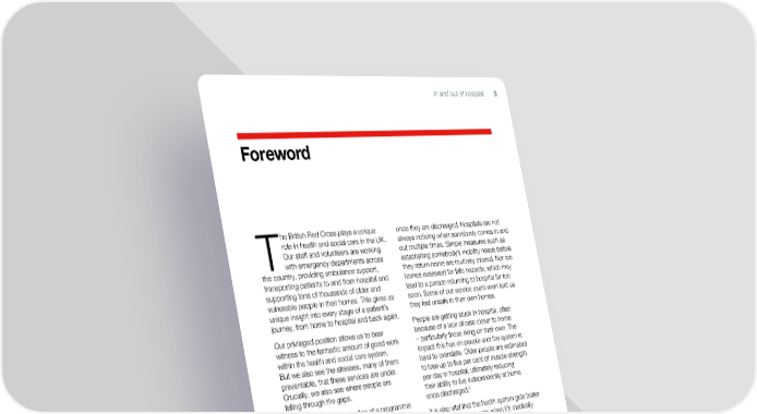 In and out of hospital 5 Foreword he British Red Cross plays a unique once they are discharged. Hospitals are not role in health and social care in the UK. always noticing when somebody comes in and Our staff and volunteers are working out multiple times. Simple measures such as Twith emergency departments across establishing somebody’s mobility needs before the country, providing ambulance support, they return home are routinely missed. Nor are transporting patients to and from hospital and homes assessed for falls hazards, which may supporting tens of thousands of older and lead to a person returning to hospital far too vulnerable people in their homes. This gives us soon. Some of our service users even told us unique insight into every stage of a patient’s they feel unsafe in their own homes. journey, from home to hospital and back again. People are getting stuck in hospital, often Our privileged position allows us to bear because of a lack of care closer to home witness to the fantastic amount of good work – particularly those living on their own. The within the health and social care system. impact this has on people and the system is But we also see the stresses, many of them hard to overstate. Older people are estimated preventable, that these services are under. to lose up to five per cent of muscle strength Crucially, we also see where people are per day in hospital, ultimately reducing falling through the gaps. their ability to live independently at home once discharged.3 This report is the culmination of a programme of research that we have undertaken, It is also vital that the health system gets better which paints a bleak picture of the stress at admitting people only when it’s medically the system is under. All too often, we see necessary and is equipped to do so safely. vulnerable people having to reach a crisis Appropriate safeguards must also be in place point before they receive support. Others before vulnerable people are discharged. are caught in an endless cycle of avoidable Our research has broadened our understanding hospital readmissions, with too many missed of these issues from the perspective of people opportunities to rectify this. at the forefront of our system: whether that Latest figures show that emergency hospital be the person receiving care or the doctor or readmissions have risen by 22.8 per cent in nurse providing it. While a lack of resources the last five years.1 Worryingly, the number underpins most of the issues set out in the of people being readmitted to hospital within report, we have tried to identify some relatively 48 hours now accounts for one in five of all simple steps that we believe could improve emergency readmissions.2 patient flow. We hope these measures will go Today we see too many missed opportunities a long way towards ensuring that more people to prevent a person’s health from deteriorating go on to live healthy and fulfilling lives. or to stop their problems from reoccurring 1 This compares to a 9.3 per cent rise in overall admissions to hospitals during the same period. Healthwatch (October 2017). 2 Healthwatch (October 2017). 3 National Audit Office, Discharging older patients from hospital, (May 2016).