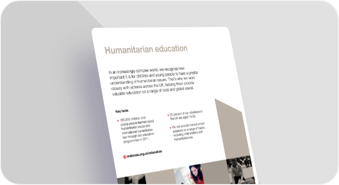 Photos on opposite page: © Theo Moye/Apex, © Simon Ridgway/UNP Humanitarian education In an increasingly complex world, we recognise how important it is for children and young people to have a greater understanding of humanitarian issues. That’s why we work closely with schools across the UK, helping them provide valuable education on a range of local and global issues. , Photo on this page: © Simon Ridgway/UNP Key facts > 183,300 children and > 20 percent of our volunteers in young people learned about the UK are aged 18-26. humanitarian issues and international humanitarian > We can provide trained school law through our education speakers on a range of topics, . programmes in 2011. including child soldiers and humanitarian law. redcross.org.uk/education I’ve been with the Red Cross for two years now. You get a lot out of it, and it provides a chance to get work with some really great people. Robert MacLean, 16, first aid volunteer, Skye