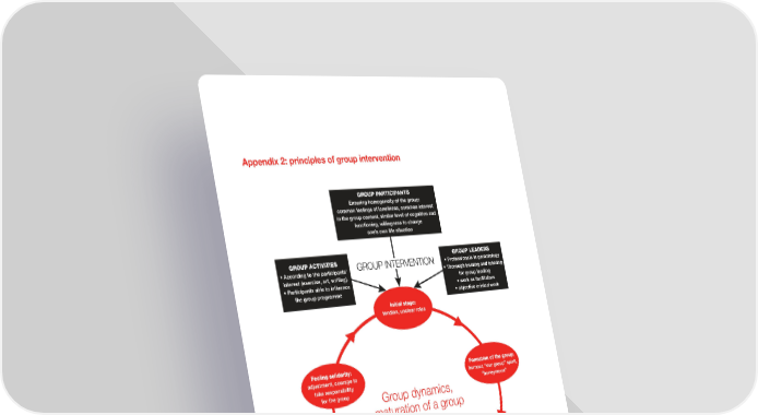 Appendix 2: principles of group intervention GROUP PARTICIPATS nsuring homogeneit o the group common eelings o loneliness, common interest in the group content, similar leel o cognition and unctioning, willingness to change one’s own lie situation GROUP ACTIVITIES GROUP EAERS • According to the participants’ GROUP INTERVENTION • Proessionals in gerontolog interest (exercise, art, writing). • ƒhorough training and tutoring • Participants able to influence or group leading the group programme • work as acilitators • objectie orinted work Initial stage: tendion, unclear roles Feeling solidarity: Formation of the grou: adjustment, courage to humour, “our group” spirit, take responsibilit “honemoon” or the group Group dynamics, maturation of a group Conflits: Confidene: courage to be critical, participants dare to speak disagreements between about sensitie matters the group members and their loneliness COO FEATURES I A GROUPS oing interesting things together and sharing experiences, sharing lonliness, receiing and giing peer support, oercoming own limits, eeling togetherness €ocial actiation, gaining new riends, making arrangements to continue group meetings. mpowerment, increased sel esteem and master oer one’s own lie ‚ alleiation o loneliness Source: Pitkala et al. (2009) Isolation and loneliness 41