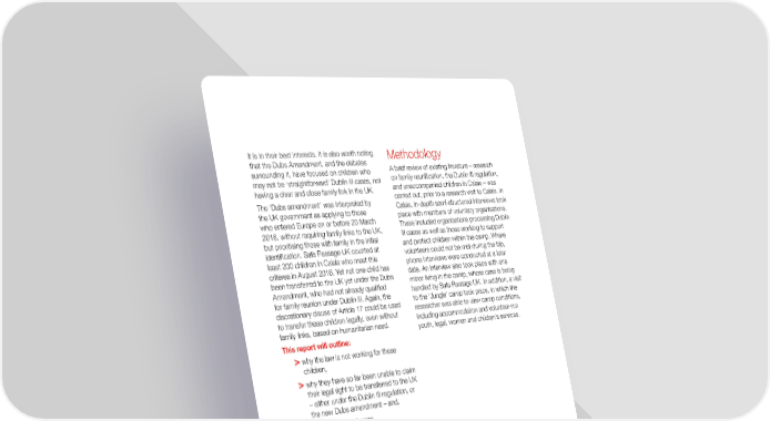it is in their best interests. It is also worth noting Methodology that the Dubs Amendment, and the debates surrounding it, have focused on children who A brief review of existing literature – research may not be ‘straightforward’ Dublin III cases, not on family reunification, the Dublin III regulation, having a clear and close family link in the UK. and unaccompanied children in Calais – was The ‘Dubs amendment’ was interpreted by carried out, prior to a research visit to Calais. In the UK government as applying to those Calais, in-depth semi-structured interviews took who entered Europe on or before 20 March place with members of voluntary organisations. 2016, without requiring family links to the UK, These included organisations processing Dublin but prioritising those with family in the initial III cases as well as those working to support identification. Safe Passage UK counted at and protect children within the camp. Where least 200 children in Calais who meet this volunteers could not be met during the trip, criterea in August 2016. Yet not one child has phone interviews were conducted at a later been transferred to the UK yet under the Dubs date. An interview also took place with one Amendment, who had not already qualified minor living in the camp, whose case is being for family reunion under Dublin III. Again, the handled by Safe Passage UK. In addition, a visit discretionary clause of Article 17 could be used to the ‘Jungle’ camp took place, in which the to transfer these children legally, even without researcher was able to view camp conditions, family links, based on humanitarian need. including accommodation and volunteer-run youth, legal, women and children’s services. This report will outline: > why the law is not working for these children, > why they have so far been unable to claim their legal right to be transferred to the UK – either under the Dublin III regulation, or the new Dubs amendment – and, > what needs to change. So far, voluntary organisations and lawyers working pro bono have been able to facilitate the transfer of just under 100 unaccompanied refugee children to the UK under the Dublin III Regulation, the majority of whom came from France. However, with conditions so dire in the ‘Jungle’, and so many children missing out on their education, a safe, loving home and proper support to deal with their trauma, that this simply is not enough. 1 https://www.facebook.com/HelpRefugeesUK/posts/306615809699099 No place for children 3