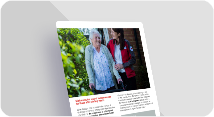 Minimising the loss of independence often only emphasised at the beginning or end for those with existing needs of that course. They also tend to mention tertiary preventative services towards the latter stages of While there’s a clear increase in the number of life. However, as Warrington’s strategy notes a strategies recognising tertiary types of preventative ‘preventative approach needs to be focussed on interventions, the importance of primary and enabling people to maintain their independence and 34 secondary preventative interventions is still enabling them to regain it at any age’. emphasised much more. And in some cases it’s not clear this third type of Recommendation: prevention is recognised at all. > Health and Wellbeing Boards should In some cases, lower-level tertiary preventative prioritise and emphasise all three types of interventions are mentioned (for example, prevention across the life course. reablement/ care in the home/ support to self- > Health and Wellbeing Boards should pay manage/ home adaptations/ assistive technologies/ special attention to explicitly recognising the respite for carers etc.) but aren’t recognised as value of tertiary preventative interventions. preventative. Recognising their preventative value is an important step to ensuring their provision. Under Section 2 of the Care Act, local authorities must ensure the provision of preventative services. And under Section 9(6)(b), they must assess whether people who do not meet the national eligibility threshold would benefit from such services. Tertiary types of preventative service are sometimes only referred to in the context of 31. The Department of Health (November 2014), The Adult Social Care Outcomes Framework mental health, long term conditions or older 2015/16: gov.uk/government/uploads/system/uploads/attachment_data/file/375431/ ASCOF_15-16.pdf people. While many strategies set out a life course 32. Department of Health (October 2014) Care and Support Statutory Guidance, Chapter 2 (2.5) approach, prevention and early intervention are 33. Care Act 2014, Section 1(2): legislation.gov.uk/ukpga/2014/23/section/1/enacted 34. Warrington Health and Wellbeing Board, Warrington Health and Wellbeing Strategy 2015 – 18: warringtontogether.co.uk/media/1017/health-and-wellbeing-2015-18-low-res.pdf British Red Cross Prevention in action [email protected] l l 15
