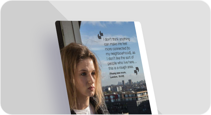 I don’t think anything can make me feel more connected [to my neighbourhood], as I don’t like the sort of people who live here… this is a rough area. (Young new mum, London, 18-24) Photo: © Simon Rawles. What kind of support do people want and how do they want support delivered? 48
