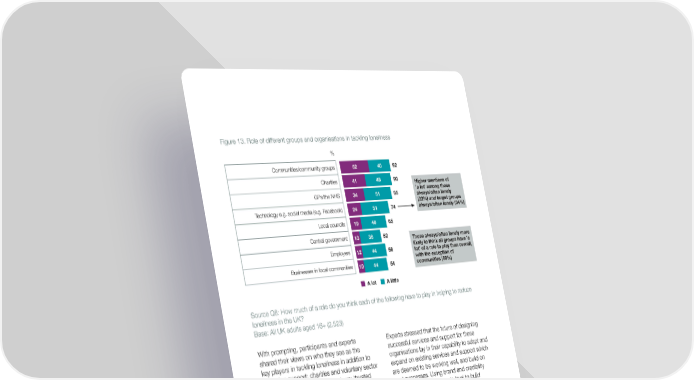 Figure 13. Role of different groups and organisations in tackling loneliness % Communities/community groups52 40 92 Charities 41 48 90 Higher mentions of 'a lot' among those GPs/the NHS 34 51 85 always/often lonely (32%) and target groups Technology e.g. social media (e.g. Facebook)245174 always/often lonely (34%) Local councils19 46 65 Central government1338 52 Those always/often lonely more likely to think all groups have 'a Employers12 44 56 lot' of a role to play than overall, with the exception of Businesses in local communities104454 communities (48%) A lot A little Source Q6: How much of a role do you think each of the following have to play in helping to reduce loneliness in the UK? Base: All UK adults aged 16+ (2,523) With prompting, participants and experts Experts stressed that the future of designing shared their views on who they see as the successful services and support for these key players in tackling loneliness in addition to organisations lay in their capability to adapt and delivering support: charities and voluntary sector expand on existing services and support which organisations; community members; ‘trusted are deemed to be working well, and build on advisors’ such as GPs and housing associations; past successes. Using brand and credibility businesses; and employers. Views of the role of from working at grass roots level to build each of these key players are discussed next, support for campaigning should enable alongside more detail on participants’ thoughts community organisations to grow public support on each group in tackling loneliness. and provide momentum around a ‘call to action’. For successful services and support to build on solid foundations, it was recommended by Role of charity and voluntary experts that forging collaborative partnerships sector organisations to fill gaps in local provision with other service Seen as the most historically linked with providers was vital. providing services and support in tackling loneliness, there was recognition from Role of community participants around prospects for growth by using best practice identified as building blocks The importance of building resilience in for future success. When presented with a list communities to tackle loneliness hinges on the of organisations and asked how much of a role successful integration of community members they had to play in tackling loneliness in the UK, into future service design. Participants highlighted communities/community groups and charities the need for support to be peer-led so that they were top of mind among the general public were able to connect with others who had been (52% and 41% saying the respective through the same difficult challenges but had organisations had a lot of a role to play).overcome them. What kind of support do people want and how do they want support delivered? 44