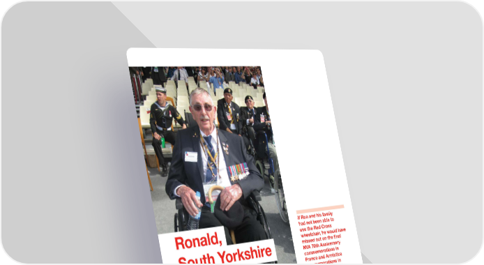If Ron and his family had not been able to Ronald, use the Red Cross wheelchair, he would have missed out on the final South Yorkshire NVA 70th Anniversary commemorations in France and Armistice commemorations in London. Being able to participate boosted Ron’s emotional state th Ronald (Ron) is a 93-year-old of walking involved in the 70 and reduced his level of World War Two veteran. He lives in Anniversary Normandy celebrations, isolation during recovery. sheltered housing and receives daily but it was unthinkable that he would When he was hospitalised support visits from his daughter, not attend as the NVA was being before the November Pam, and son, David, as he is very disbanded at the end of 2014. This frail. In the early 1980s he became was the last opportunity for Ron to commemorations in active in the Normandy Veterans visit the beaches and cemeteries London, knowing that Association (NVA), organising and of Normandy and to remember his he might be able to attending several trips to Normandy, fallen comrades. After the summer attend with the aid of the th th th including the 40 , 50 and 60 events, Ron became ill and had wheelchair motivated his commemorations of the Normandy to stay in hospital for two weeks. improved rate of recovery Landings. He rallied with the thought that he In 2014, the family realised that Ron could use a wheelchair to attend the during and after hospital would need a wheelchair since he November remembrance events in rehabilitation. would struggle with the amount London. 12